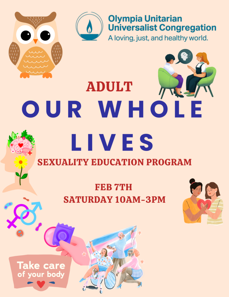 The Our Whole Lives program offers age appropriate, comprehensive, values-based sexuality education for all ages and is a beloved program in our UU congregations.