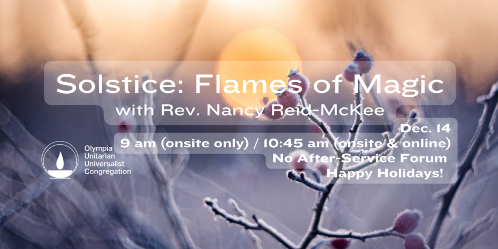 We will celebrate Winter Solstice during this service. As we share the time of the shortest day, we will explore the hope and the stories that light our way forward.