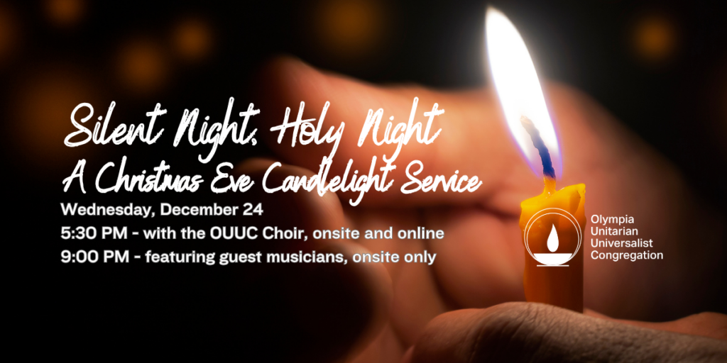 A beautiful candlelight service to celebrate Christmas Eve, featuring the OUUC and guest musicians led by OUUC’s Music Director Troy Fisher. Come gather in the warmth of community and the glow of candlelight as we honor this special evening together.